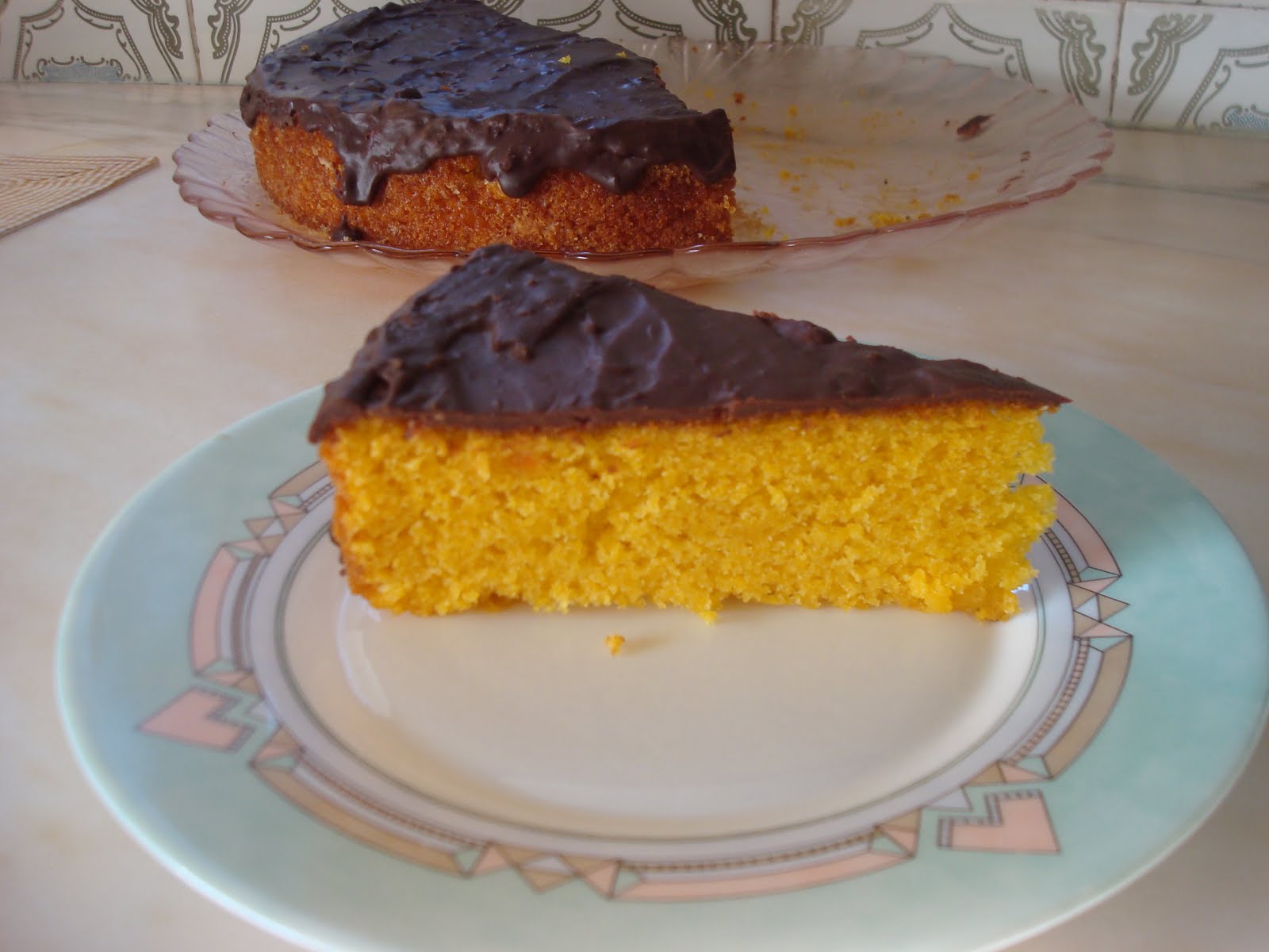 Enquanto o bolo ainda quente, despeje a mistura de laranja e açúcar sobre o bolo e deixe-a mergulhar.